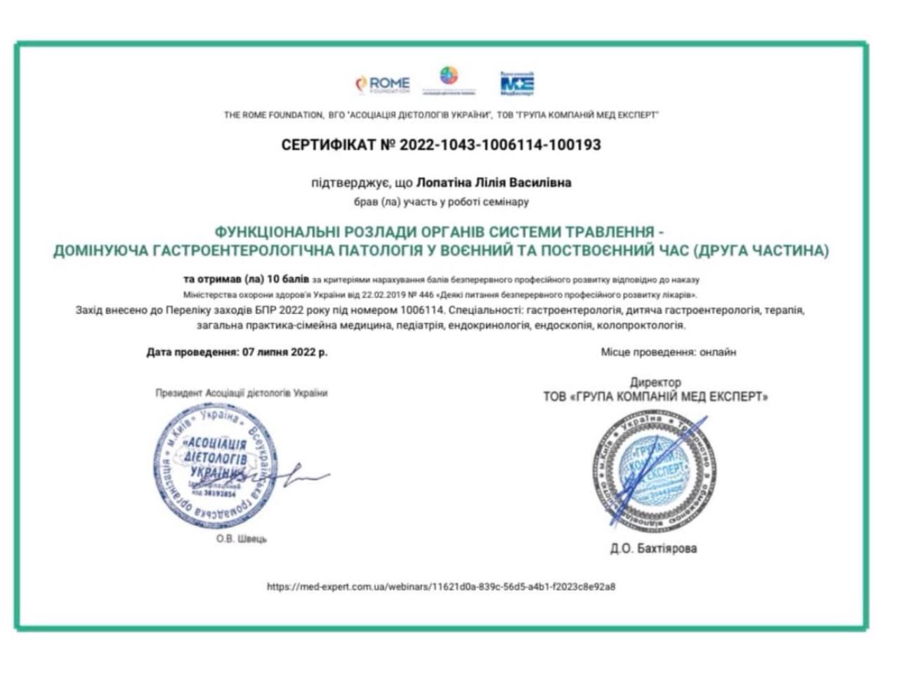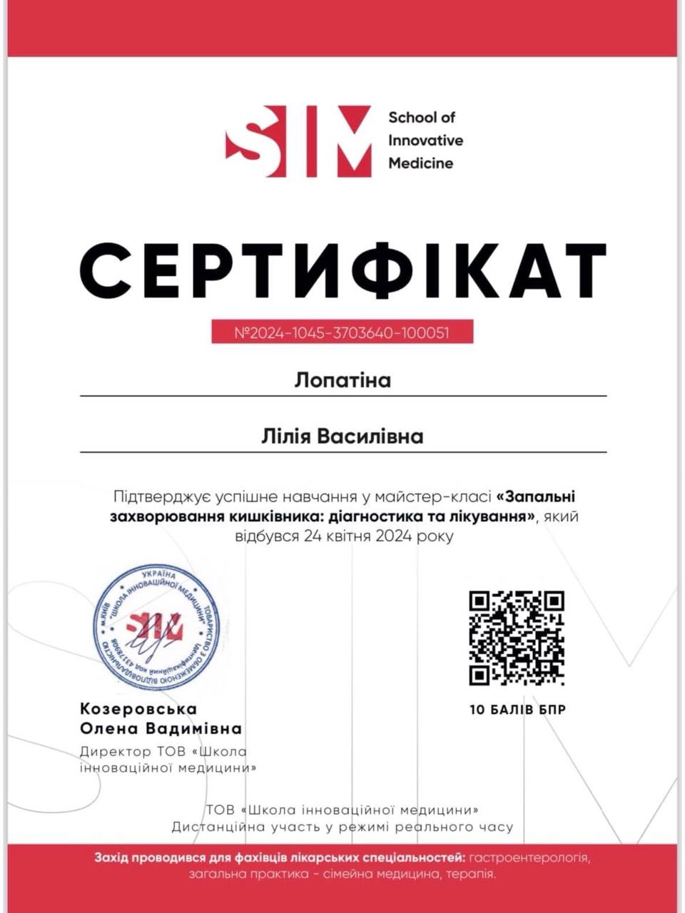 Відгуки про лікаря: 1