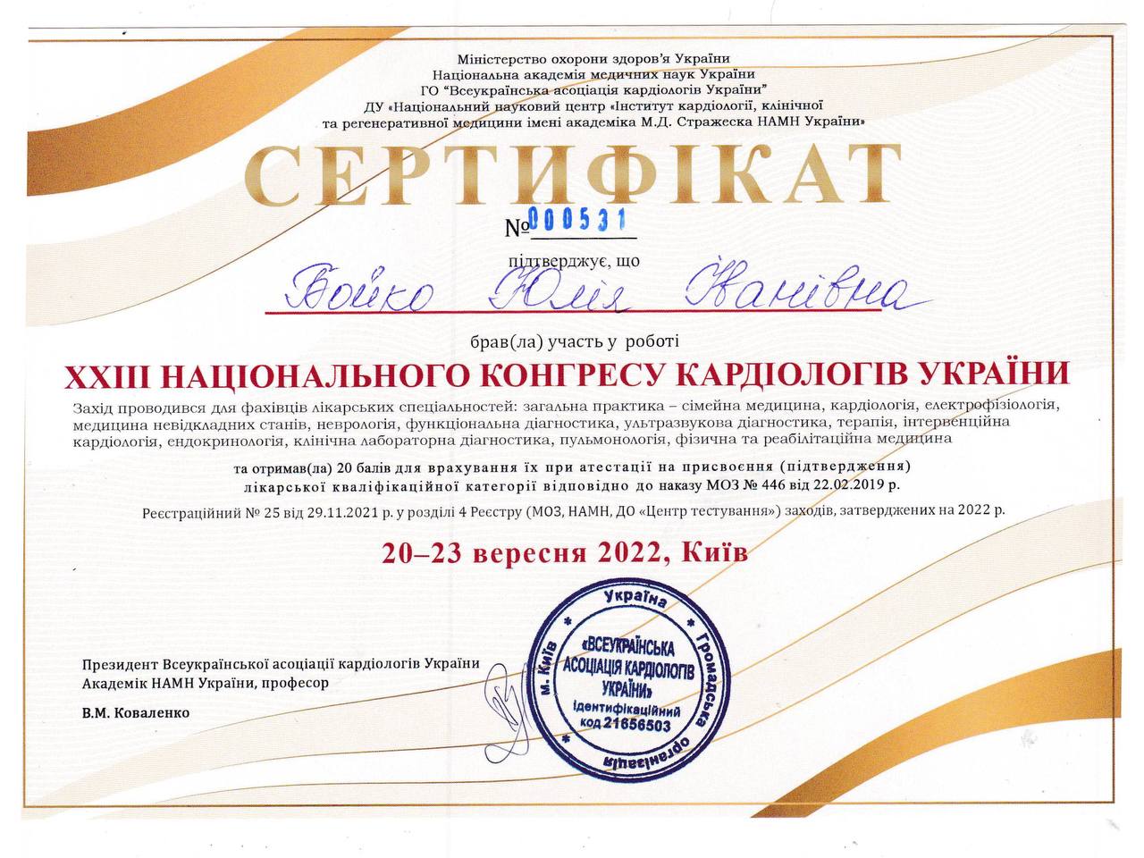 2018 – 2023 гг. – ежегодное участие в Конгрессе кардиологов Украины г. Киев (с международным участием).