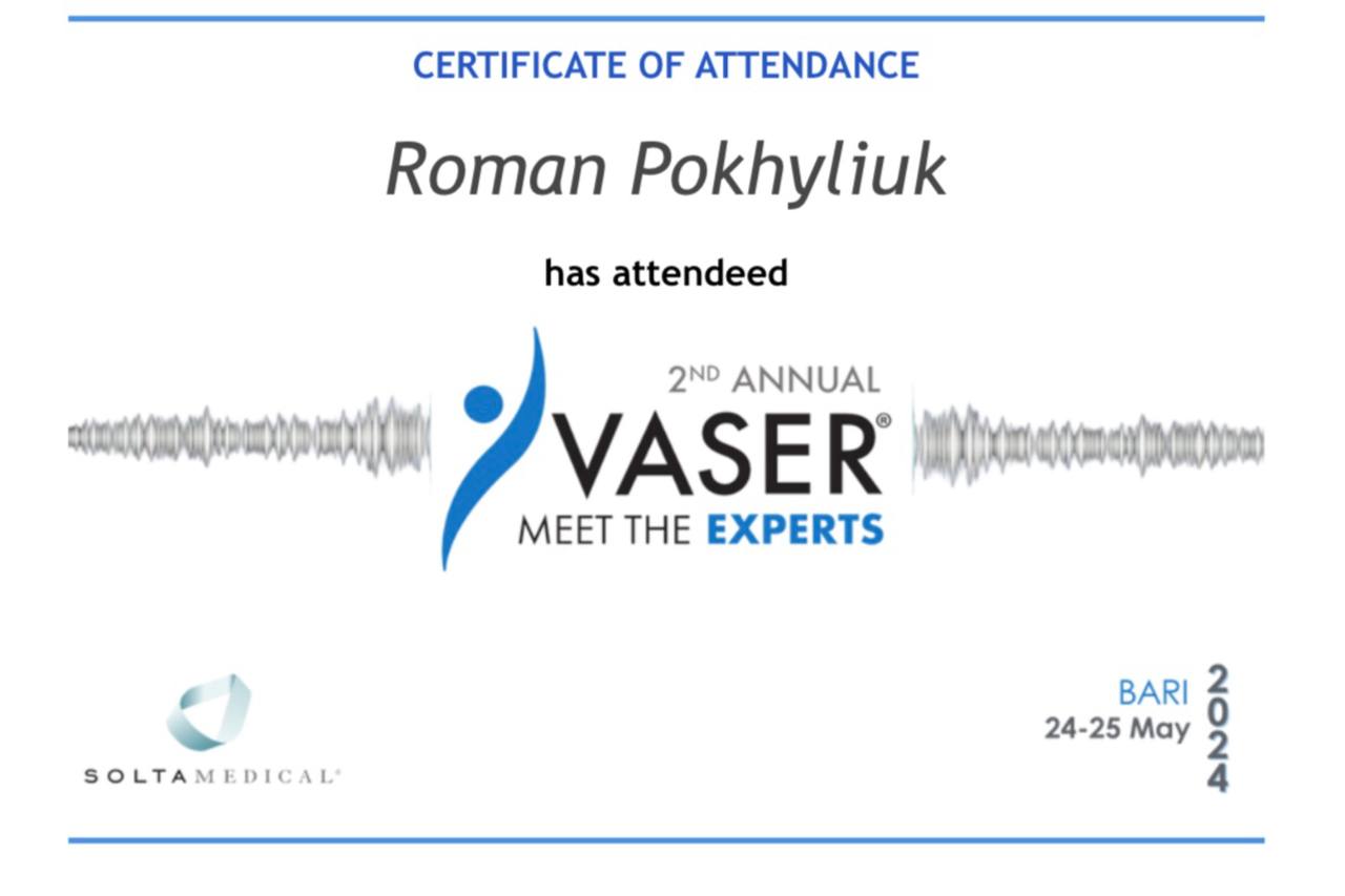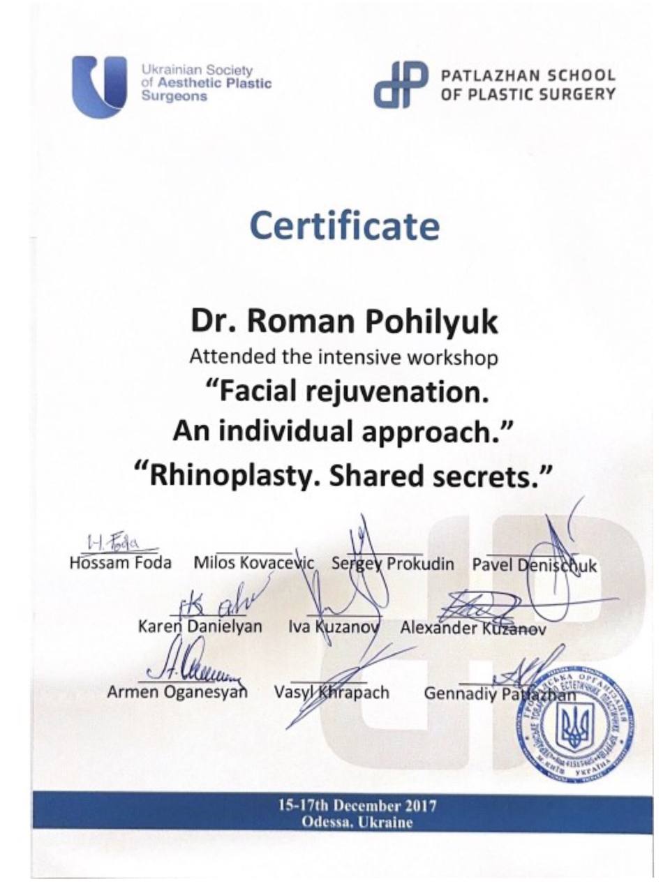 2022 г. – ПВНЗ «Киевский медицинский университет» курс специализации по пластической хирургии.