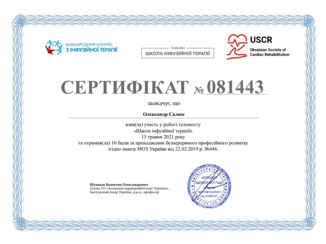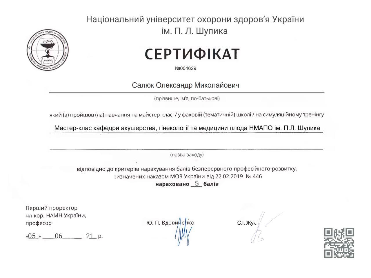 1999 – 2001 гг. – прохождение интернатуры по специальности «акушерство и гинекология» – Винницкий государственный медицинский университет им. М. И. Пирогова