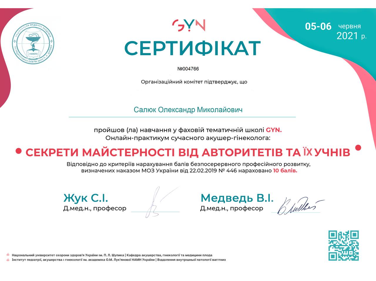 2021 г. – мастер-класс кафедры акушерства, гинекологии и медицины плода НМАПО им. П.Л. Шупика.
