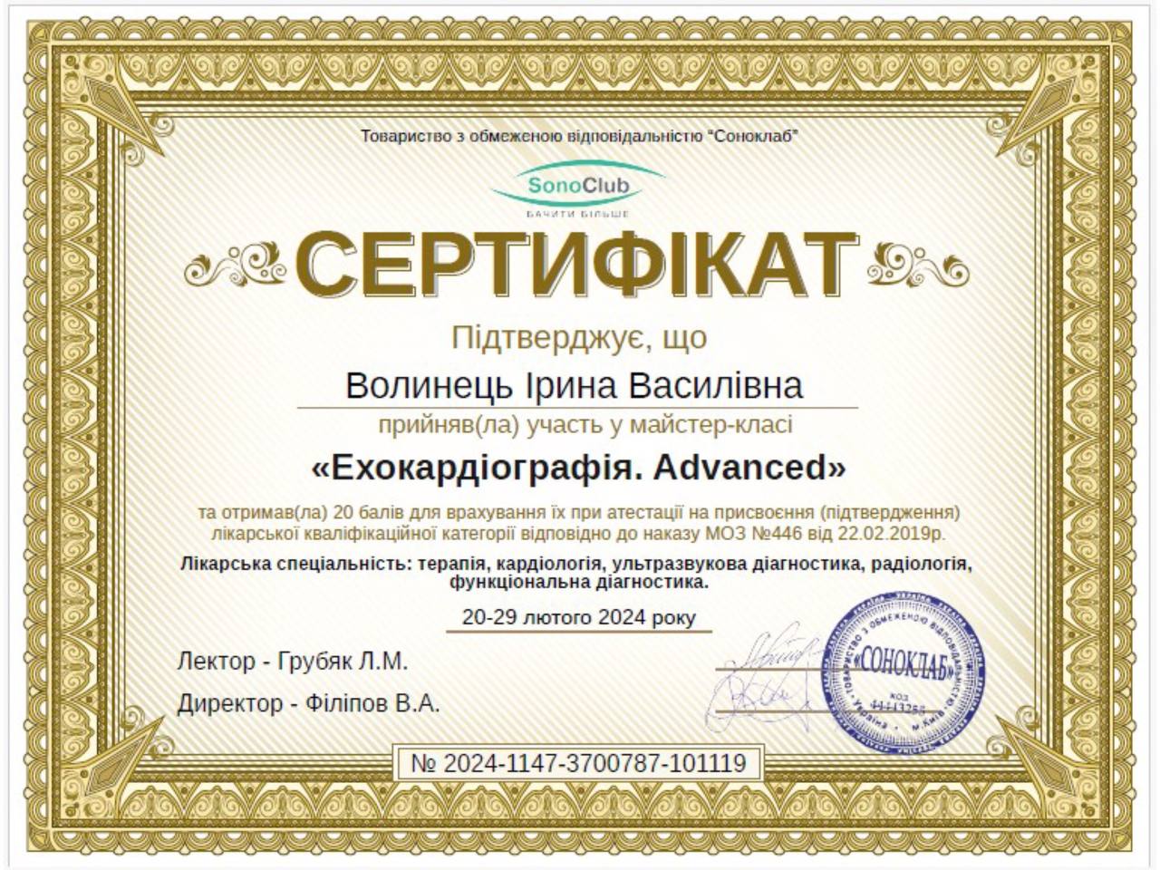 Доктор функциональной диагностики высшей категории.