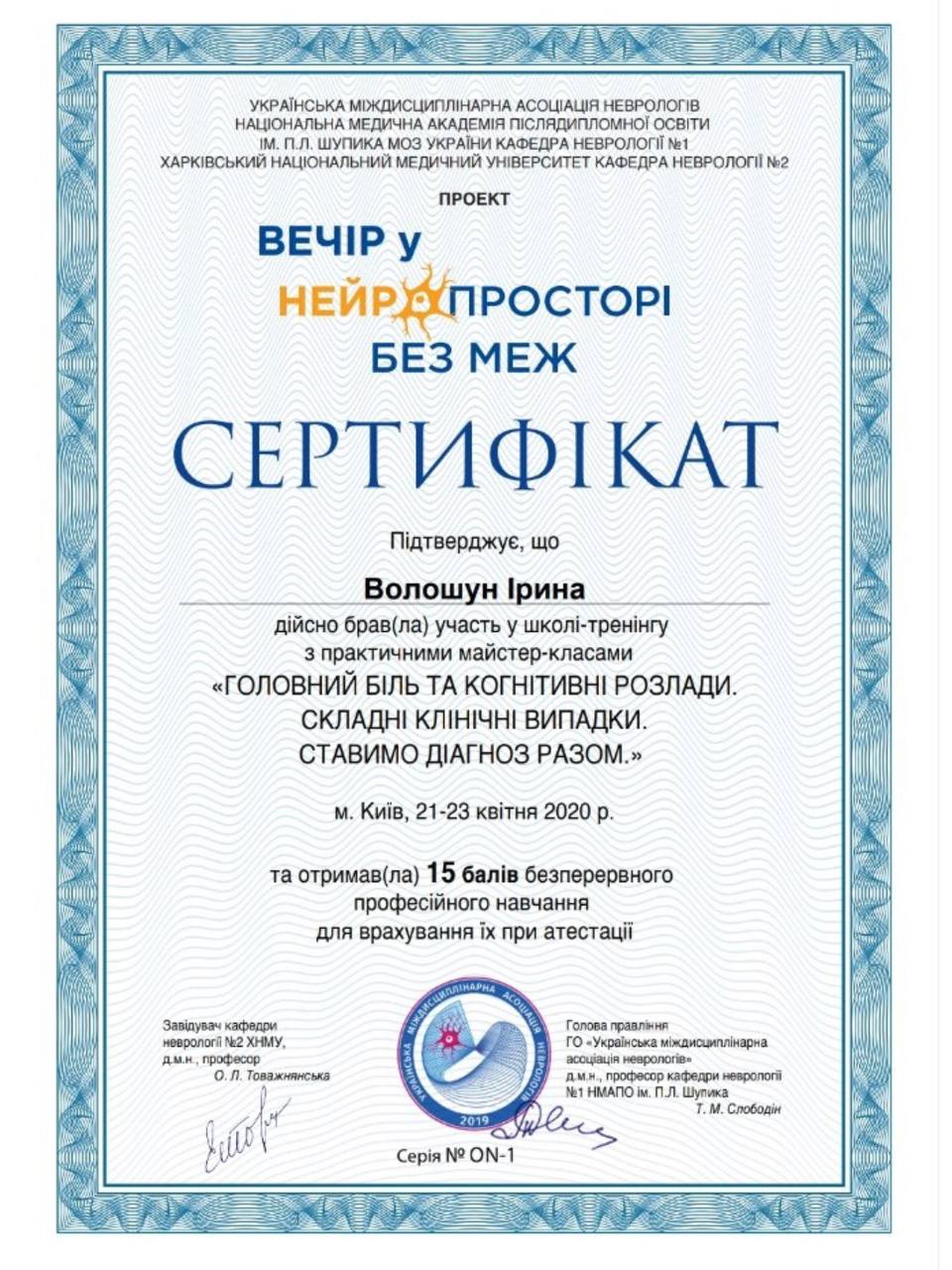 2020 г. – школа тренинг "Головная боль и когнитивные расстройства. Сложные клинические случаи".