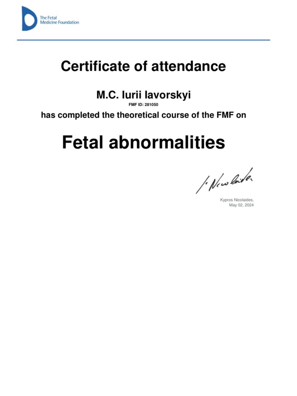 2024 р. – курси підвищення кваліфікації - НУОЗУ ім. П.Л. Шупика.